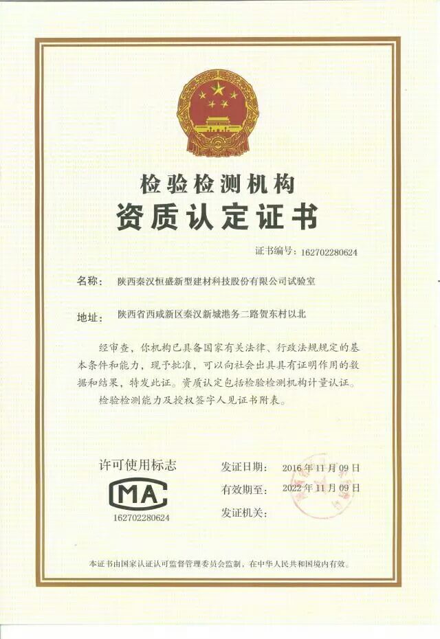 五、陜西秦漢恒盛新型建材科技股份有限公司試驗(yàn)室順利通過(guò)資質(zhì)認(rèn)定