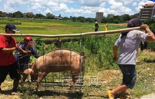事故發(fā)生后,豬場老板叫來了另一輛貨車轉(zhuǎn)運(yùn)生豬。要將一頭一兩百斤重的生豬重新裝運(yùn)上車并不容易,這些受到了驚嚇的生豬顯得很不配合,需要兩三個(gè)人連拉帶拽才能把生豬趕進(jìn)籠子里裝運(yùn)上車。眾人用了兩個(gè)多小時(shí)才將生豬全部運(yùn)走。