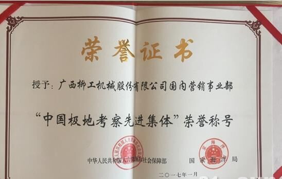 2017年4月24日,北京 — 今天,由人力資源和社會保障部、國家海洋局聯(lián)合表彰的中國極地考察先進集體和先進個人活動在北京舉行,柳工榮獲“中國極地考察先進集體榮譽”。