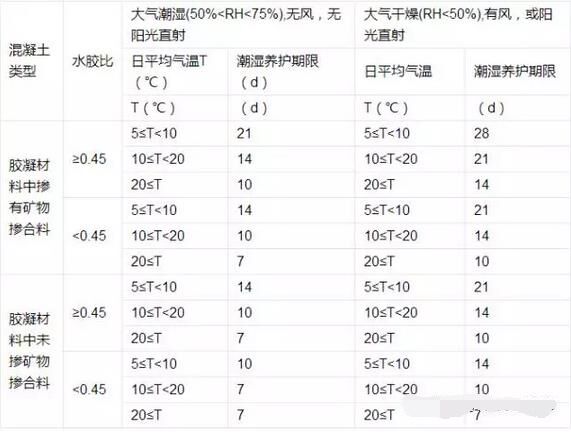 注:大體積混凝土的養(yǎng)護時間不宜小于28d。