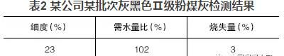 混凝土公司大多數(shù)使用的粉煤灰顏色與水泥相近,多呈灰色;也有部分粉煤灰顏色較深呈灰黑色,這種粉煤灰一般細度較細或含碳量較高。但總會發(fā)現(xiàn)一些深顏色的粉煤灰檢測結(jié)果與常理不符,如某公司某批次灰黑色Ⅱ級粉煤灰檢測結(jié)果見表2。