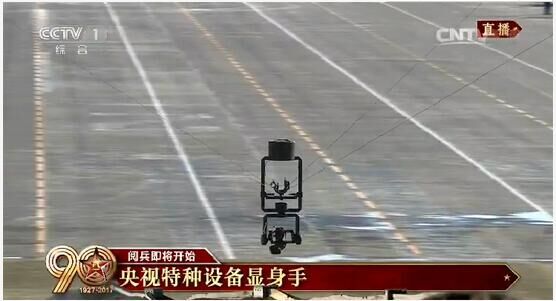 大閱兵直播鏡頭中在高空俯拍閱兵隊伍意氣奮發(fā)的行進畫面,是由名為“天鷹”攝像系統(tǒng)拍攝的。“天鷹”系統(tǒng)的定位支撐采用中聯(lián)重科兩臺ZTC大型汽車起重機,架起高度為30米由南向北的300米拍攝索道,通過攝像設備在索道間來回穿梭拍攝,將下方的壯觀景象一覽無余。