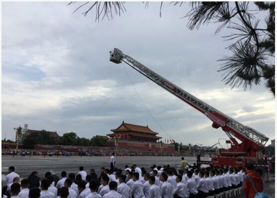 此外,為滿足各種拍攝條件,央視還精選了中聯(lián)重科56米泵車和32米云梯消防車。56米泵車可謂是大號“攝像搖臂”,在其臂架前端架設攝像機輔助拍攝閱兵隊伍行進的動態(tài)長鏡頭。32米云梯消防車則是超高的“拍攝平臺”,央視的“長頸鹿攝像機”架設在高度32米的消防平臺上,攝像師站在平臺上捕捉受閱裝備彎道轉(zhuǎn)彎的精彩畫面,體現(xiàn)鋼鐵洪流卷起滾滾烽煙。在前期,云梯消防車還承擔了輔助架設“天鷹”的重任。