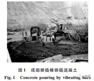實(shí)際上,坍落度不僅只是一個(gè)靜態(tài)性能的檢測(cè),反映不出在振動(dòng)外力作用下的行為,而且坍落度值大小無(wú)法反映出拌合物塑性黏度,但是塌落時(shí)的快慢在一定程度上與可泵性相關(guān)。早先在檢測(cè)混凝土坍落度后,要用振搗棒從側(cè)面敲擊,稱為“棍度”,也是一種有效的工作度評(píng)價(jià),再結(jié)合肉眼觀察,綜合評(píng)定混凝土的和易性,這種方法應(yīng)該說(shuō)還是比較全面的。當(dāng)然,對(duì)于振搗作用的評(píng)價(jià)需要例如混凝土維勃稠度儀簡(jiǎn)稱VB儀)來(lái)檢測(cè)。筆者前些時(shí)在一個(gè)水電工程施工單位時(shí),建議用VB儀來(lái)評(píng)價(jià)拌合物的工作度,因?yàn)楝F(xiàn)行用50~70mm坍落度來(lái)評(píng)價(jià)的做法很脫離施工現(xiàn)場(chǎng)用成組振搗棒振搗作用的實(shí)際(見(jiàn)圖1)。