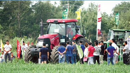 作為農(nóng)機(jī)行業(yè)知名品牌,凱斯為本次田間日準(zhǔn)備了專為國內(nèi)用戶設(shè)計、在玉米和小麥?zhǔn)斋@均有較好表現(xiàn)的軸流滾筒聯(lián)合收割機(jī)及用戶聯(lián)合整地和耕整地作業(yè)的大馬力拖拉機(jī),為當(dāng)?shù)赜脩魩韯恿C(jī)械及收獲機(jī)械選擇。據(jù)介紹,該公司軸流滾筒聯(lián)合收割機(jī)突破了傳統(tǒng)收割機(jī)只能收獲單一作物的局限,通過更換不同的部件,配置相應(yīng)的割臺,可以收割玉米、小麥、水稻、大豆、油菜等多種作物。而拖拉機(jī)能實(shí)現(xiàn)不同作業(yè)條件下自動調(diào)節(jié)檔位,既適用于深松、犁地、聯(lián)合整地等重負(fù)荷作業(yè),又可進(jìn)行播種、中耕、噴藥等輕負(fù)荷作業(yè)。