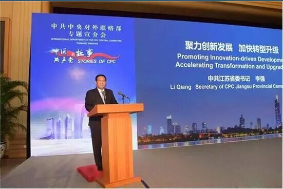 8月31日,中共中央對(duì)外聯(lián)絡(luò)部在京舉行“中國(guó)共產(chǎn)黨的故事:江蘇省委的實(shí)踐——?jiǎng)?chuàng)新驅(qū)動(dòng)、轉(zhuǎn)型發(fā)展”專(zhuān)題宣介會(huì),邀請(qǐng)中共江蘇省委向訪華的外國(guó)政黨政要、駐華使館高級(jí)外交官、外國(guó)商會(huì)、跨國(guó)公司駐華代表等,宣介習(xí)近平總書(shū)記治國(guó)理政新理念新思想新戰(zhàn)略在江蘇的貫徹落實(shí)情況,展示江蘇省委落實(shí)習(xí)近平總書(shū)記重要指示精神,在創(chuàng)新驅(qū)動(dòng)轉(zhuǎn)型發(fā)展生動(dòng)實(shí)踐中的突出成效和經(jīng)驗(yàn)做法。