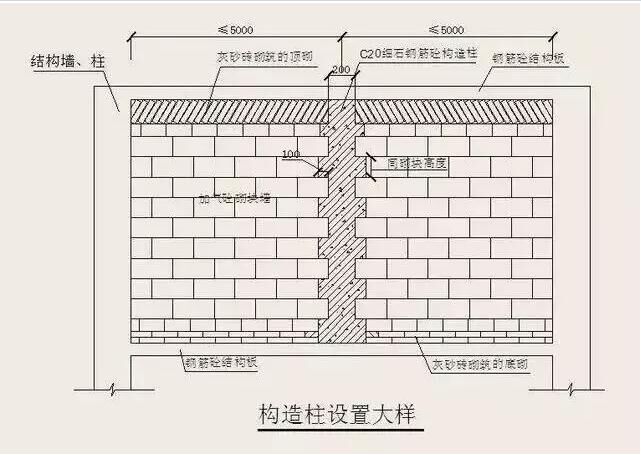 寬度大于2m的洞口的兩側(cè)、長度超過2.5m的獨立墻體的端部;砌塊墻體的長度超過5m時,應(yīng)設(shè)鋼筋混凝土構(gòu)造柱。