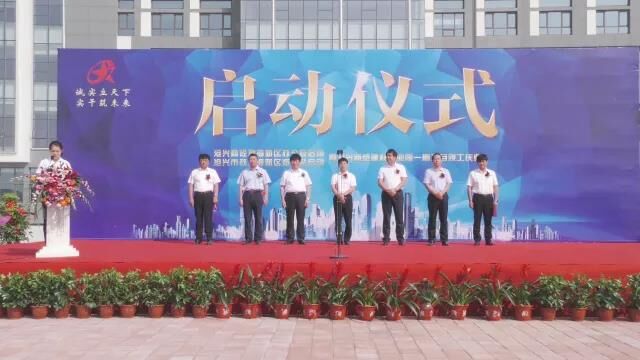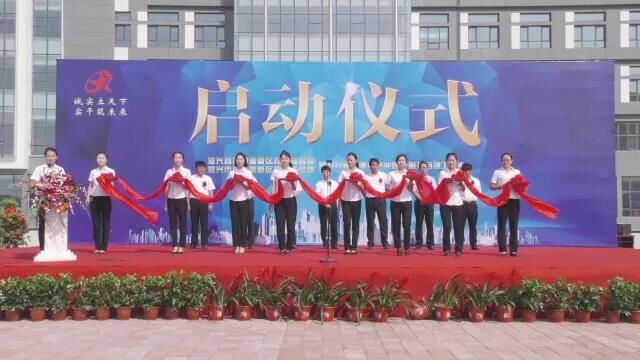 臺上領導共同為慶典儀式剪彩,將現(xiàn)場氣氛推向高潮。