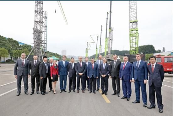 9月28日,由白俄羅斯莫吉廖夫州執(zhí)行委員會主席多馬涅夫斯基、白俄羅斯經(jīng)濟(jì)部部長季諾夫斯基、白俄羅斯駐華大使魯?shù)陆M成的代表團(tuán)抵湘訪問。當(dāng)天下午,代表團(tuán)一行來到中聯(lián)重科麓谷工業(yè)園進(jìn)行參觀,中聯(lián)重科董事長詹純新熱情接待了代表團(tuán)。