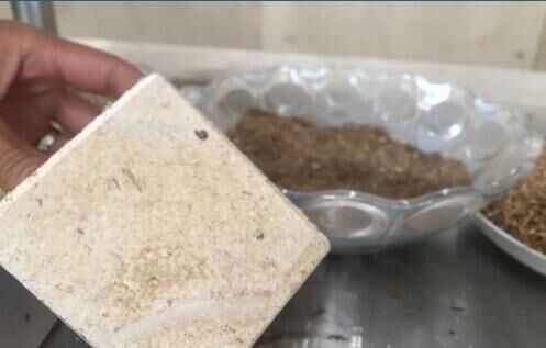 上生產(chǎn)出來的鋼鈣秸稈實心墻板已擺放得整整齊齊?!斑@些機器‘吃’進去的是秸稈,‘吐’出來的是墻板,正適合當作建筑外墻屋面材料?!痹摴窘?jīng)理文華銀拿出了一塊墻板樣品,側(cè)切面能清晰地看到秸稈碎屑。盡管摸上去第一感覺像木頭,但用手使勁兒敲打卻能感受到足夠的硬度,“每平米墻板所含的秸稈能達到60%至80%?!?