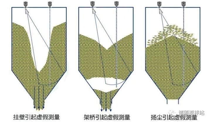 通過輸出位置信息來反應(yīng)料位情況,無法克服倉(cāng)內(nèi)物料掛壁、架橋,揚(yáng)塵等干擾因素,測(cè)量數(shù)據(jù)不準(zhǔn)確,誤差太大。