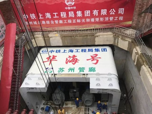 11月18日,隨著中國中鐵上海工程局“華海號”頂管機的最后一頂,我國目前管廊施工領(lǐng)域頂距最長、斷面最大的矩形頂管工程——江蘇蘇州市城北路綜合管廊元和塘頂管工程順利貫通,該頂管工程被業(yè)內(nèi)譽為“中國第一頂”。