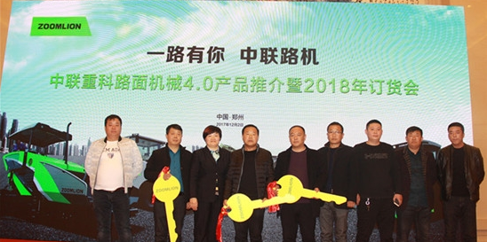 2017年12月2日,中聯(lián)重科在河南省黃河迎賓館舉行了主題為“一路有你 中聯(lián)路機(jī)”的路面機(jī)械4.0產(chǎn)品推介會(huì)暨2018年訂貨會(huì)。推介會(huì)上,中聯(lián)重科路面機(jī)械公司副總經(jīng)理周元珍、中聯(lián)重科路面機(jī)械公司營(yíng)銷(xiāo)公司總經(jīng)理張曉東、中聯(lián)重科路面機(jī)械產(chǎn)品研究所所長(zhǎng)龔敬等公司領(lǐng)導(dǎo)與中國(guó)建筑第七工程局集團(tuán)有限公司商務(wù)總經(jīng)理魏新保、設(shè)備管理部經(jīng)理?xiàng)罡邆?、鄭州市公路局路通公司副總?jīng)理馬國(guó)強(qiáng)、鄭州市瀝青站協(xié)會(huì)會(huì)長(zhǎng)朱金安、河南連通路橋有限公司副總經(jīng)理袁偉、等當(dāng)?shù)匦袠I(yè)資深人士,同河南省內(nèi)近兩百位客戶(hù),共商路面機(jī)械產(chǎn)品升級(jí)及項(xiàng)目施工助建方案。