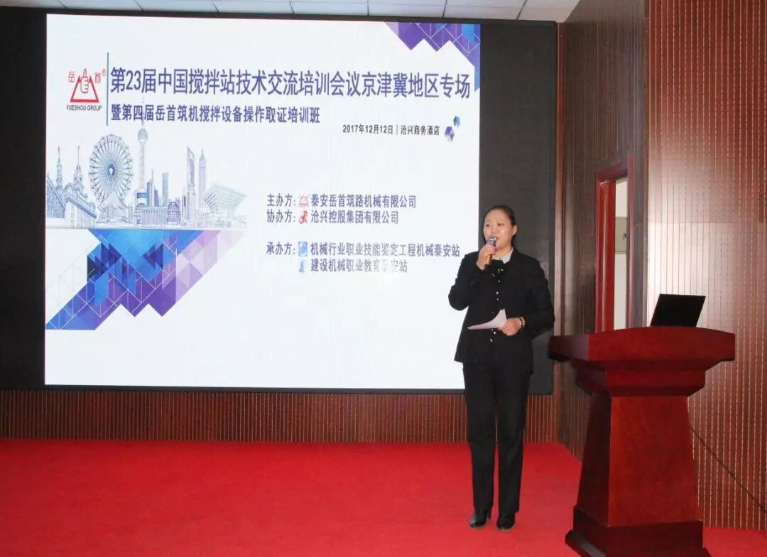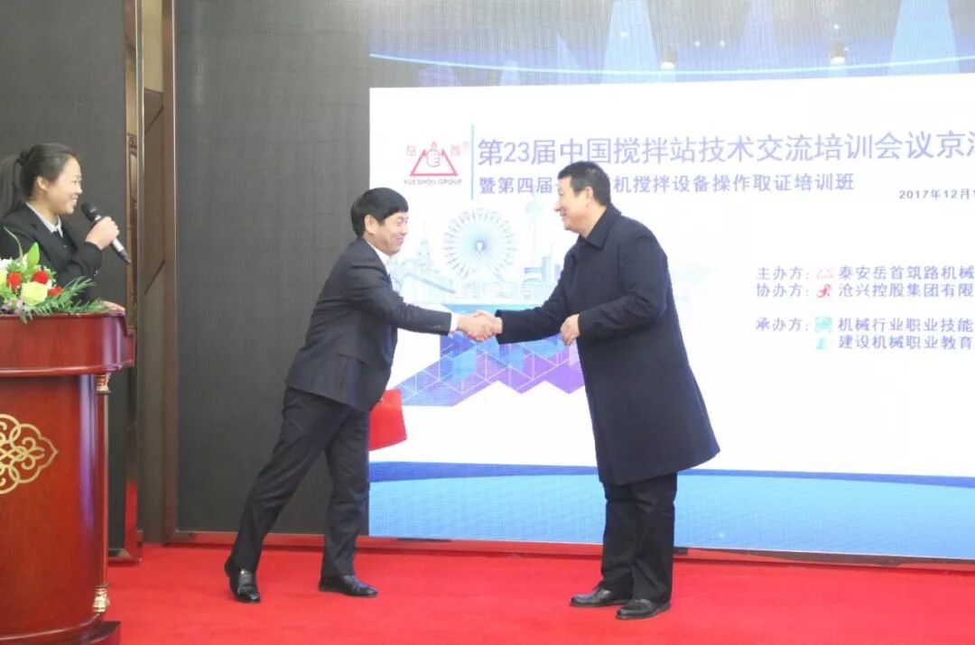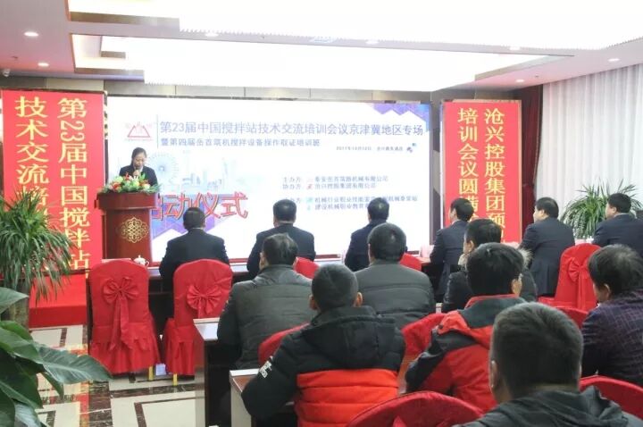 為進一步提高攪拌設(shè)備從業(yè)人員的專業(yè)管理、操作技能水平;探討交流攪 拌站維護保養(yǎng)方式方法;使一線管理、操作人員具備能管理、懂原理、懂構(gòu)造、懂用途、懂性能,會操作、會維護、會排除故障的專業(yè)技能;更好 地服務(wù)于設(shè)備使用單位。泰安岳首筑路機械有限公司聯(lián)合機械行業(yè)職業(yè)技 能鑒定工程機械泰安站、建設(shè)機械職業(yè)教育泰安站于2017 年12 月11-12 日在河北省滄州市舉辦了“第23屆中國攪拌站技術(shù)(設(shè)備)交流培訓(xùn)會議 京津冀地區(qū)專場暨第四屆岳首筑機攪拌設(shè)備管理操作培訓(xùn)班”,滄興控股集團有限公司協(xié)辦了本次會議。