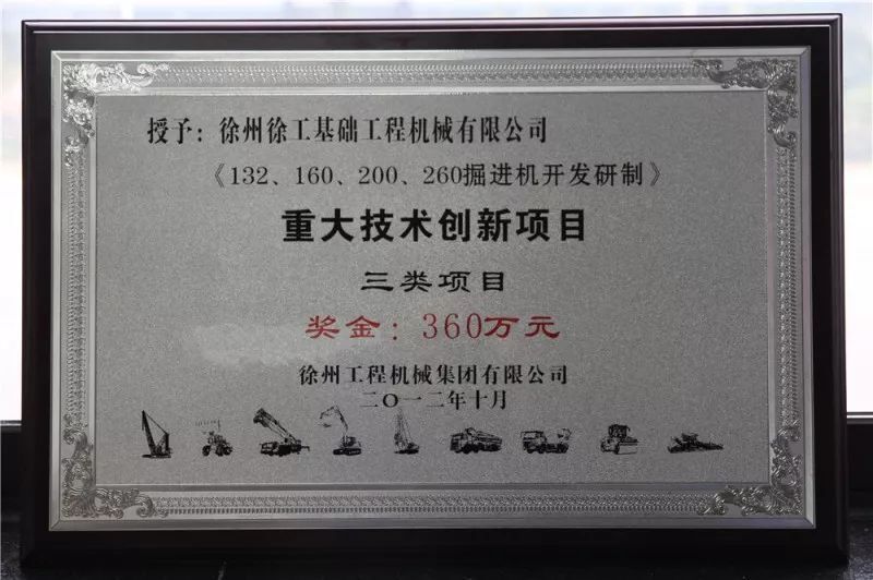 2011年,當年9月,徐工基礎推出首臺具有自主知識產權的EBZ160掘進機,其成功研制填補了徐工在煤礦掘進機方面的空白,當年順利通過煤安認證、實現銷售;2012年10月,EBZ135、160、200、260系列掘進機被授予徐工集團重大技術創(chuàng)新項目,獲得獎金360萬元。