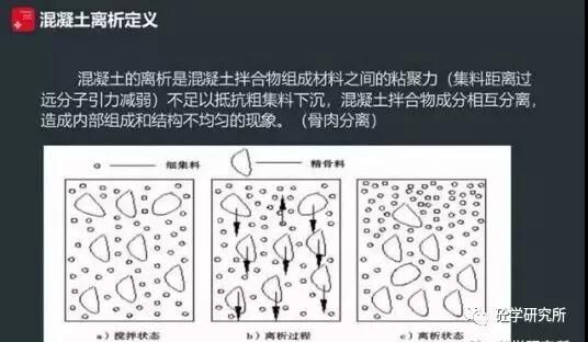 混凝土離析啊是混凝土是混凝土拌合物組成材料之間的一個黏聚力,(集料距離過遠分子引力減弱)不足以抵抗粗集料下沉,混凝土拌合物成分互相分離,造成內(nèi)部組成結(jié)構(gòu)不均勻的現(xiàn)象。