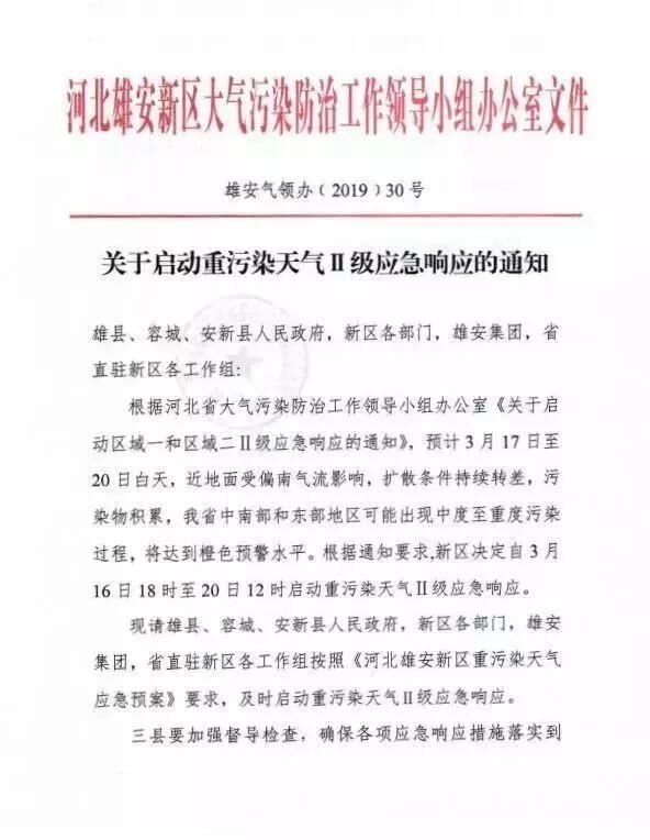 按照省大氣辦《關(guān)于啟動區(qū)域一和區(qū)域二Ⅱ級應(yīng)急響應(yīng)的通知》要求,根據(jù)近日氣象擴散條件,市重污染天氣應(yīng)對指揮部決定自2019年3月16日18時至20日12時,全市啟動重污染天氣Ⅱ級應(yīng)急響應(yīng)?,F(xiàn)將有關(guān)事項通知如下: