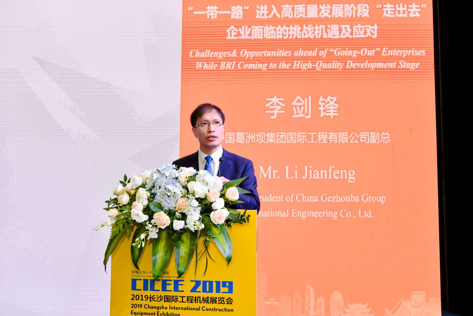 中國葛洲壩集團(tuán)工程有限公司副總李劍鋒分享了葛洲壩對(duì)于“一帶一路”中國工程機(jī)械“走出去”的想法和看法。闡述了“一帶一路”進(jìn)入高質(zhì)量發(fā)展階段”走出去"企業(yè)所面臨的挑戰(zhàn)機(jī)遇。