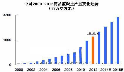 中國商品混凝土市場(chǎng)自2000年開始,增長就大幅度提升,2000-2012年平均增幅高達(dá)30%左右。但受全球經(jīng)濟(jì)危機(jī)的影響,中國2008年的商品混凝土市場(chǎng)也受到了不小的沖擊,商品混凝土的增長率大幅度下滑。不過與歐盟、美國等其他發(fā)達(dá)國家混凝土負(fù)增長率而言,中國混凝土市場(chǎng)表現(xiàn)的還是十分活躍的。這也反映出了中國的商品混凝土行業(yè)進(jìn)入高速發(fā)展時(shí)期的特征。但中國市場(chǎng)目前的市場(chǎng)狀況十分紊亂,行業(yè)內(nèi)需要進(jìn)行一番整合,清理一些市場(chǎng)上不規(guī)范的企業(yè),相信整合后對(duì)我國商品混凝土行業(yè)將起到較大的推動(dòng)作用。中國混凝土網(wǎng)預(yù)計(jì)“十二五”期間,預(yù)拌混凝土產(chǎn)量還將有小幅增長,到2016年中國預(yù)拌混凝土產(chǎn)量將突破30億立方米,混凝土行業(yè)將邁上一個(gè)新的臺(tái)階,但總體行業(yè)回歸平穩(wěn)狀態(tài)。