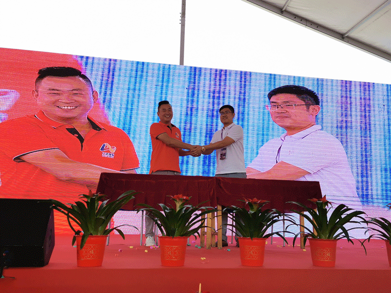 山東八達(dá)國(guó)際工程機(jī)械有限公司于保成副總經(jīng)理與山東天宇建設(shè)機(jī)械股份有限公司姜山總裁進(jìn)行現(xiàn)場(chǎng)簽約儀式