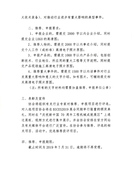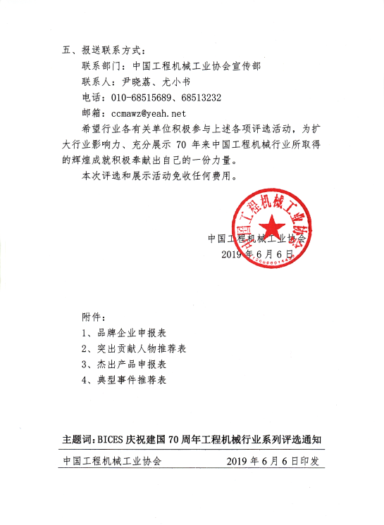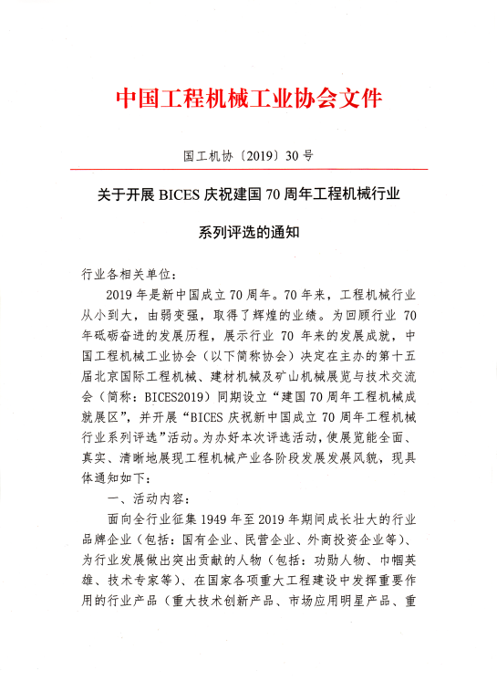 關(guān)于開(kāi)展BICES慶祝建國(guó)70周年工程機(jī)械系列行業(yè)評(píng)選的通知