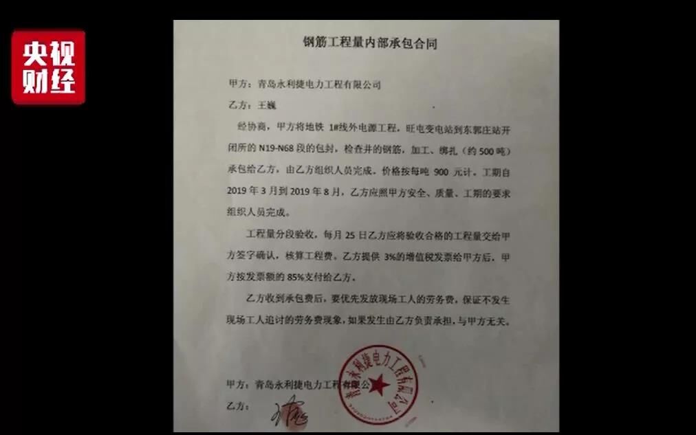 至于永利捷與下游企業(yè)繼續(xù)進行分包的事宜,記者也獲得了一份永利捷公司與下游公司簽訂的合同。而法律專家表示,從永利捷公司往下的一系列轉(zhuǎn)包分包行為均涉嫌違法。