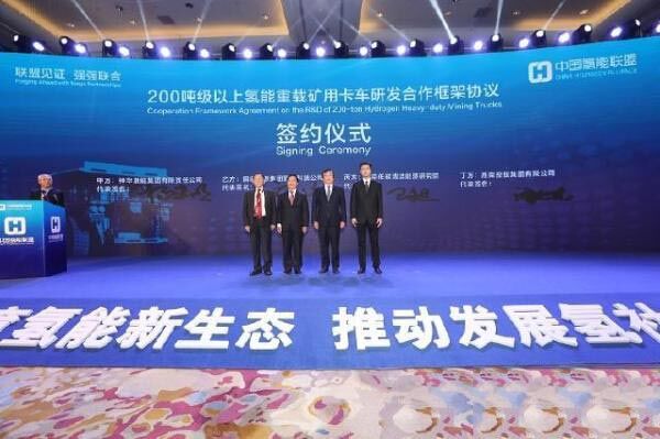 濰柴與國能集團(tuán)合作開展的200噸級(jí)氫能礦卡項(xiàng)目簽約儀式