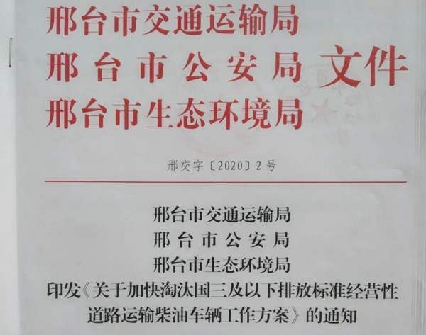 近日,河北邢臺市出臺《關(guān)于加快淘汰國三及以下排放標準經(jīng)營性道路運輸柴油車輛工作方案》,引導、鼓勵國三車所有人主動淘汰,對到達報廢期限未報廢的堅決予以取締。