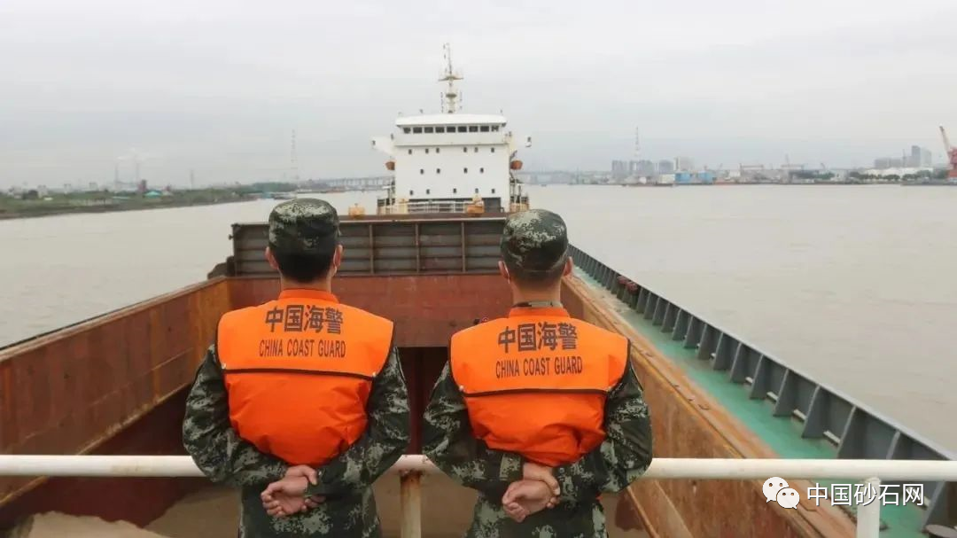日前,上海海警95110平臺接到報警電話后,立即派出浦東海警局艦艇前往指定海域處置,隨后在寶山錨地查獲一艘名為“長昌南?!钡恼憬涊?,該船裝有可疑黃砂約5.2萬噸,船上共有船員23人,無法提供黃砂的合法手續(xù),涉嫌海上走私違法犯罪。