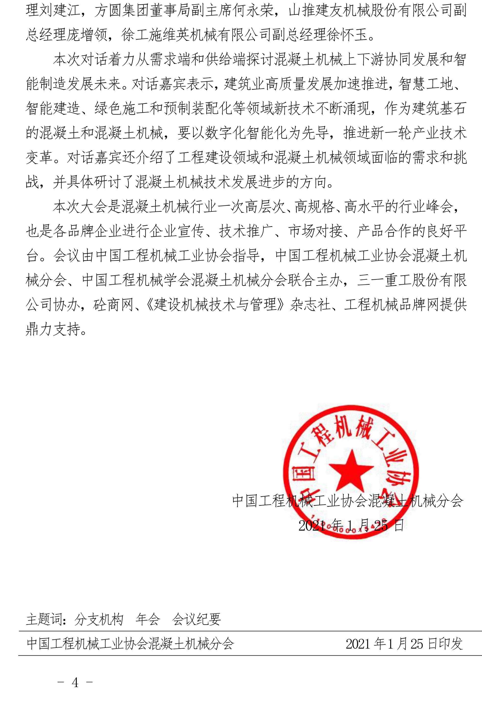 中國工程機械工業(yè)協(xié)會混凝土機械分會 2020年年會會議紀要
