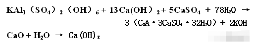 現(xiàn)在的膨脹劑一般是雙膨脹源:硫鋁酸鹽和氧化鈣!下面公式是反應(yīng)膨脹的機理,從這里可以看出氧化鈣與水生成氫氧化鈣,體積膨脹,硫鋁酸鹽與氫氧化鈣、硫酸鈣和水又生成帶32個結(jié)晶水的水化硫鋁酸鈣,也就是鈣礬石,水泥水化物的一種
