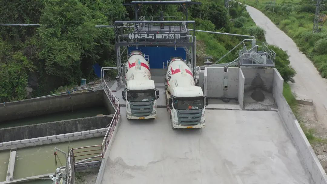 廠區(qū)一角,南方路機(jī)WCRE60設(shè)備一旁地上的漿水罐,具有自動(dòng)排污清污功能,能有效降低漿水濃度,減輕了人工清理成本。設(shè)有定時(shí)攪拌器,定時(shí)啟動(dòng)攪拌器,即可快速將漿水?dāng)嚢杈鶆?,漿水罐有自動(dòng)排污功能,有效地保障了漿水使用后混凝土的安全性。