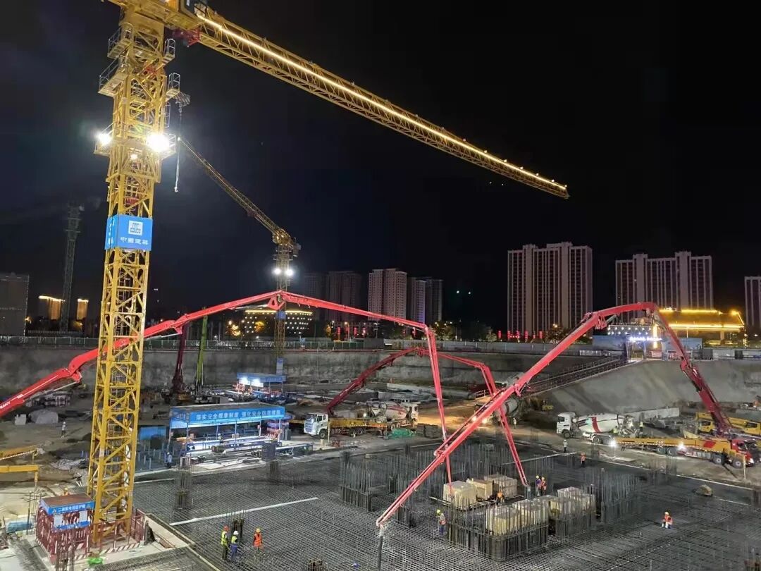 此次施工創(chuàng)造了天水市單次筏板混凝土澆筑量最大及澆筑厚度最大等多項(xiàng)記錄,標(biāo)志著中深財(cái)富中心超高層主體施工已全面展開(kāi)。