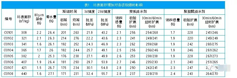2 水泥品質(zhì)指標(biāo)對混凝土的影響