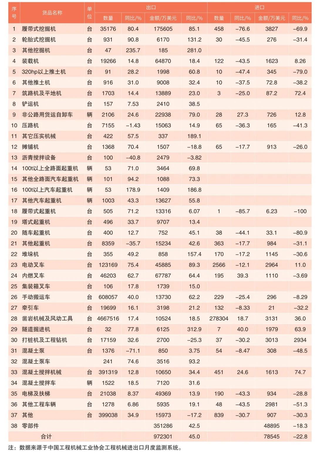 (1)在復(fù)雜多變的國際政治、經(jīng)濟(jì)、市場環(huán)境下,我國工程機(jī)械在去年出口總額340億美元的基礎(chǔ)上,今年一季度繼續(xù)呈現(xiàn)較高增長速度,一季度各月出口均創(chuàng)當(dāng)期歷史最高水平,呈現(xiàn)出較強(qiáng)的韌性。