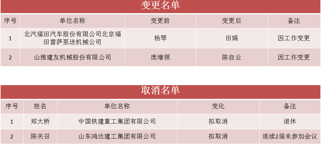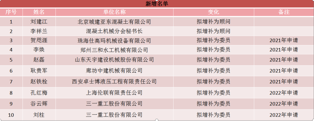 2022年4月29日經(jīng)混凝土機械分會理事會決議,團(tuán)標(biāo)委員增補10人,變更2人,取消2人。委員人數(shù)由31人調(diào)整至39人。