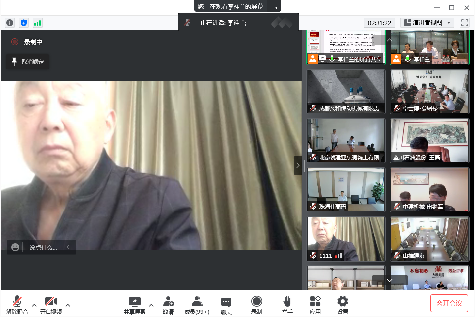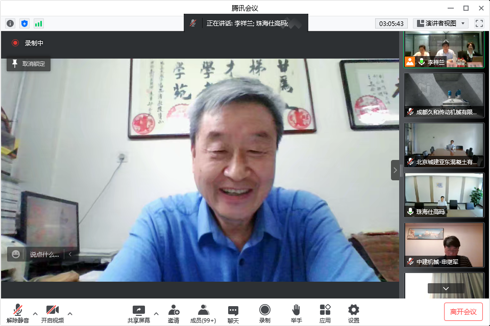混凝土機械分會的年會還得到很多行業(yè)老前輩,專家、高工、行業(yè)精英的關(guān)注和支持,在自由交流環(huán)節(jié),中國工程機械工業(yè)協(xié)會名譽會長祁俊祁會長也發(fā)言祝賀,首先祝賀大會線上會議開的非常成功,他呼吁現(xiàn)在中國混凝土機械在全世界已占主導(dǎo)地位,站在領(lǐng)跑位置,肯定了行業(yè)的領(lǐng)先性,但由于各種因素的疊加,行業(yè)也到了最困難的時候,協(xié)會要增加上下游的互動,爭取支持,抱團(tuán)取暖,希望混凝土機械在工程機械整個領(lǐng)域大家共同進(jìn)步,相互幫扶渡過難關(guān)。