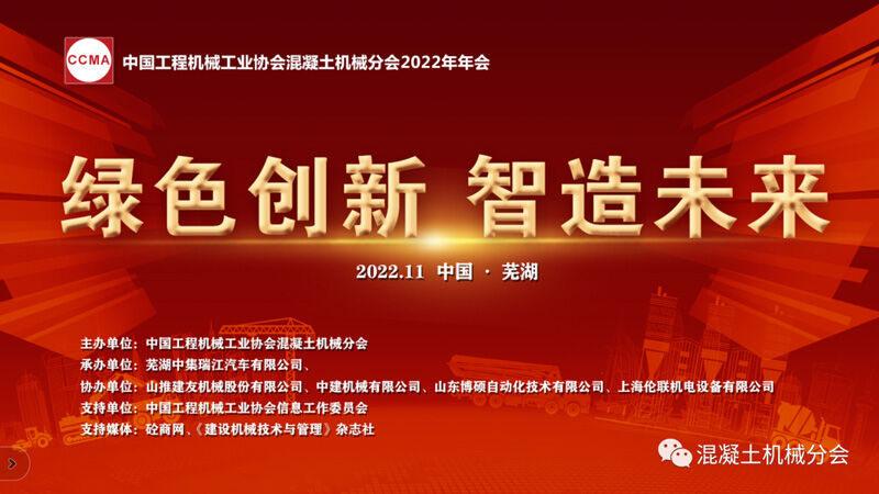 2022年11月17日至19日,以“綠色創(chuàng)新 智造未來”為主題的中國工程機(jī)械工業(yè)協(xié)會混凝土機(jī)械分會2022年年會在安徽蕪湖隆重舉行。