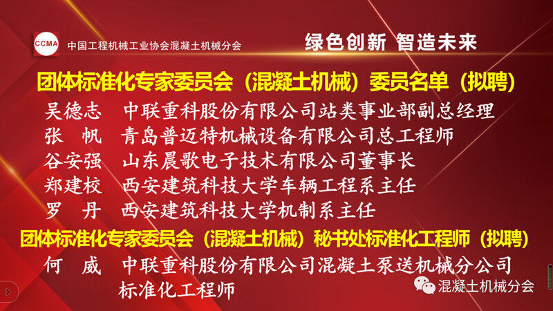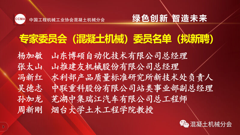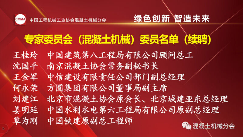 中國工程機(jī)械工業(yè)協(xié)會混凝土機(jī)械分會會長符忠軒宣讀兩份通知。一份為《關(guān)于2022年中國工程機(jī)械工業(yè)協(xié)會專家委員會(混凝土機(jī)械)委員聘任的通知》,其中中國工程機(jī)械工業(yè)協(xié)會專家(混凝土機(jī)械)委員會(混凝土機(jī)械)續(xù)聘7位,新聘6位委員,共13位。
