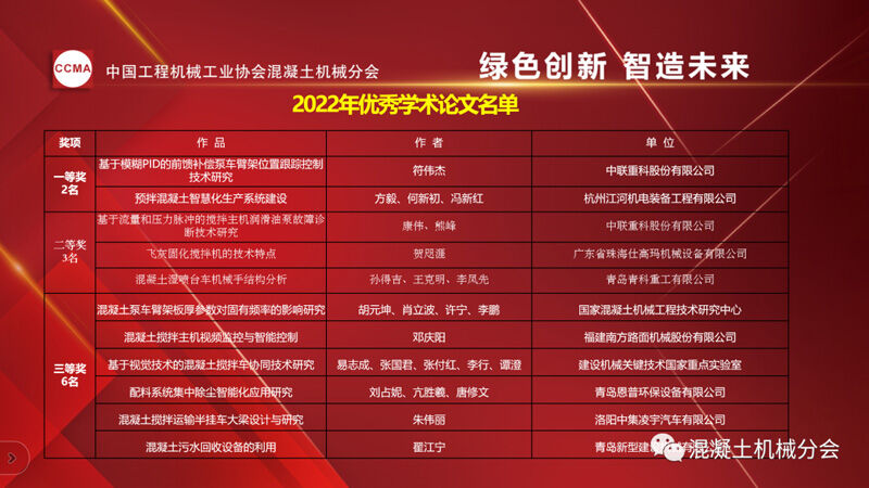 中國工程機(jī)械工業(yè)協(xié)會混凝土機(jī)械分會副秘書長龍衛(wèi)平先生宣讀《關(guān)于發(fā)布2022年混凝土機(jī)械優(yōu)秀論文獲獎名單的通知》。