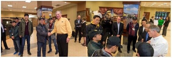 美國(guó)中部時(shí)間11月11日上午,Cat鋼鐵英雄爭(zhēng)霸賽盟主一行抵達(dá)卡特彼勒公司坐落于奧羅拉市的Cat裝載機(jī)工廠,展開(kāi)為期兩天的卡特彼勒公司參觀訪問(wèn)。隨后,盟主們輾轉(zhuǎn)皮奧里亞市,重溫卡特彼勒百年輝煌之路,訪問(wèn)了生產(chǎn)推土機(jī)的卡特彼勒東皮奧里亞工廠和卡特彼勒的訪客中心,并在美國(guó)中部時(shí)間12日下午抵達(dá)愛(ài)德華茲演示與學(xué)習(xí)中心,通過(guò)遙控駕駛體驗(yàn)了Cat D11T大型推土機(jī)。傍晚時(shí)分,卡特彼勒董事長(zhǎng)兼首席執(zhí)行官道格拉斯?歐博赫曼與其他公司全球高層熱烈歡迎各位盟主的到來(lái),并認(rèn)真傾聽(tīng)了他們對(duì)Cat產(chǎn)品設(shè)備的訴求。