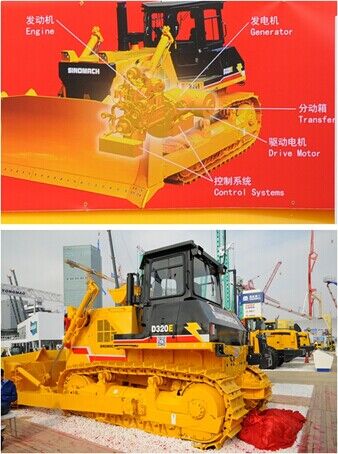 電傳動大型礦車在大型礦山并不鮮見,但履帶式推土機采用電傳動型式,在國內尚屬首次,國機重工在bauma2014推出了D320E電傳動履帶式推土機。