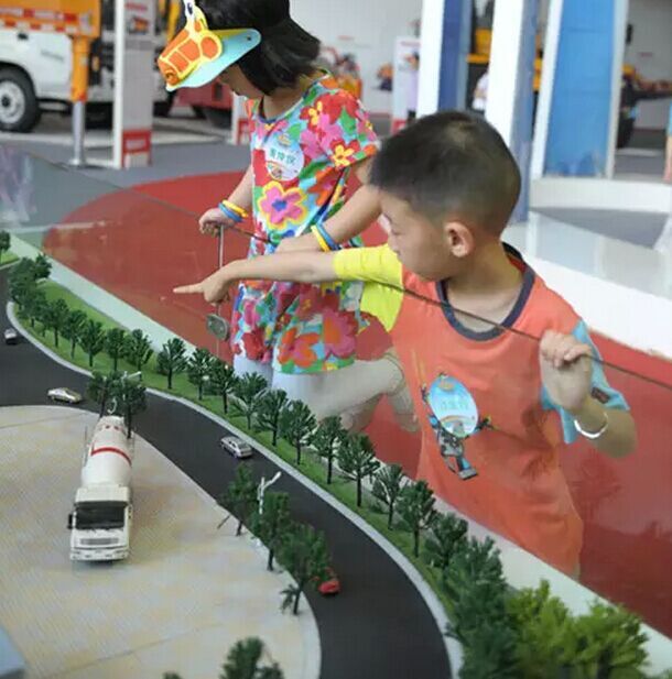 上午,近三十位小朋友跟隨自己的父母一同來到了寬敞明亮的三一辦公室,原來平時爸爸媽媽就是在這里工作啊,好像很好玩的樣子哦!觀看三一直升機。孩子們都是第一次親眼見到直升飛機,現場一片尖叫和歡呼聲,大家紛紛擺起剪刀手與這個大家伙合影。參觀三一博物館。工程機械是什么東東,也許孩子們還不能完全明白,但看到挖機的挖斗、起重機的吊臂、攪拌車的攪拌桶,孩子們都被這神奇的工程機械世界深深吸引……再到全球最大的混凝土生產基地——18號廠房。在綠植環(huán)繞的最美廠房中,孩子們戲水、奔跑,仿佛置身于一個大公園里,開心不已。