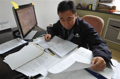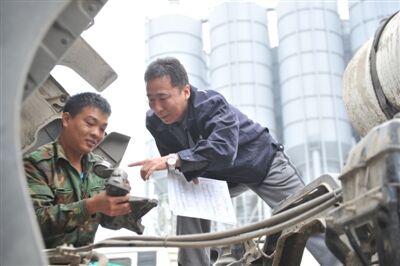 近日,記者來到位于西四環(huán)的混凝土攪拌站,走進(jìn)維修車間,石新雨和他的徒弟正在車床前忙碌著。見到記者進(jìn)來,石新雨的徒弟說,“是采訪‘牛哥’來的吧!他可是我們這兒的大能人?!笔掠臧咽掷锏幕罡赏辏钢饷鎭硗乃喙嘬嚭顽P車對(duì)記者說,“這些車輛和攪拌站設(shè)備都是我們維修保養(yǎng),為了保障設(shè)備運(yùn)行生產(chǎn),我們必須掌握一些技術(shù)?!彼弥掷飫偧庸ず玫囊粋€(gè)零件說,“這是水泥罐車上的一個(gè)易損件,經(jīng)過我們加工改造,可以節(jié)約50%成本?!弊哌M(jìn)維修車間旁邊他的辦公室,隨處可見許多技術(shù)專業(yè)書籍,涉及到機(jī)械、液壓液力、電子控制、軟件應(yīng)用等方面的內(nèi)容。石新雨說,“這些書是我的‘專業(yè)技術(shù)老師’”。