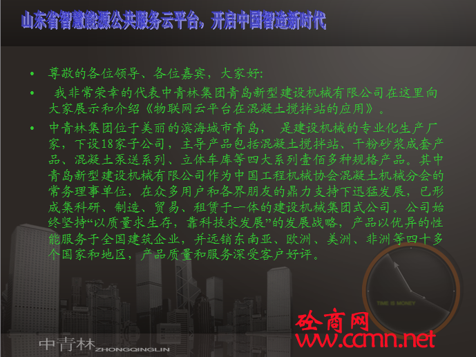 山東智慧能源公共服務(wù)平臺(tái)于6月16日開(kāi)通,該平臺(tái)可以實(shí)現(xiàn)對(duì)鍋爐、電梯、變頻機(jī)組、分布式光伏電站、熱力管網(wǎng)、等運(yùn)行數(shù)據(jù)實(shí)時(shí)在線采集和分析控制,為中小企業(yè)提供能源管理服務(wù)。青島新型建設(shè)機(jī)械有限公司以徐君飛徐總為代表參加了本次服務(wù)平臺(tái)開(kāi)通儀式,徐總在現(xiàn)場(chǎng)就物聯(lián)網(wǎng)云平臺(tái)對(duì)攪拌站的管理服務(wù)進(jìn)行闡述。