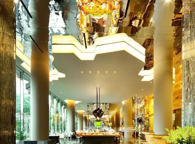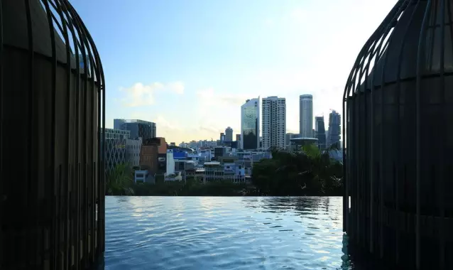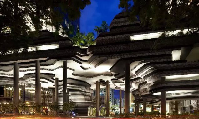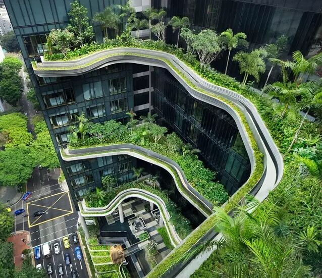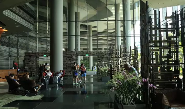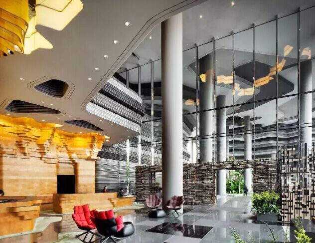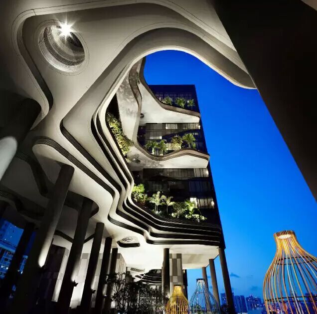 建筑流動的幾何體給人一種高聳入云之感,塔樓每隔三層客房擁有懸挑的空中花園,上面種滿了熱帶植物,它已成為城市綠地的一部分,與鄰近公園融為一體。酒店擁有自我遮陽功能,懸挑而出的空中花園和相鄰的三座酒店客房大樓都能起到遮陽的作用,客房樓層立面采用低輻射玻璃。酒店頂樓的屋頂花園可將全城風(fēng)光一覽無余,獨家蘭花貴賓會所位處該層,并配有私人會議空間、圖書館和專用的貴賓會所門房。酒店五層設(shè)有可俯瞰城市的無邊界泳池,設(shè)備先進的健身中心,特色的鳥籠休息涼亭及長達300米花園走道。