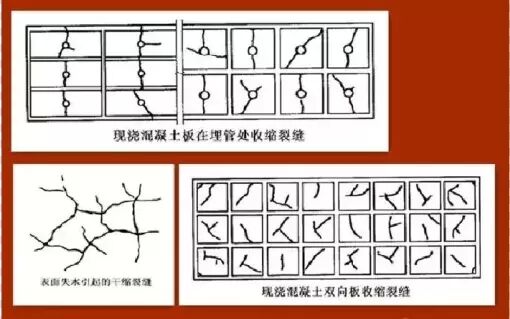 2塑性收縮(干縮)裂縫多發(fā)生在混凝土澆注后、還處于塑性狀態(tài)時,由于天氣炎熱、蒸發(fā)量大、大風或混凝土本身水化熱高等原因,而產生裂縫。