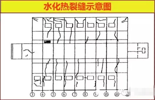 水化熱裂縫一般特征:有表層裂縫、內部裂縫、底層裂縫、貫穿裂縫、非貫穿裂縫和轉角、截面突變部位及孔洞角部的熱應力集中裂縫等類型。就其裂縫形狀而言,有龜裂縫或放射狀裂縫、水平裂縫、豎向裂縫、斜向裂縫等。