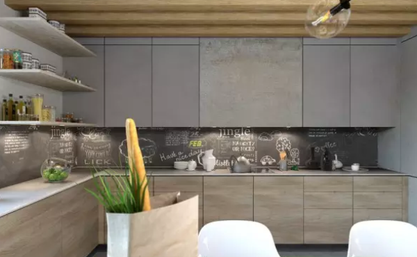 進門后左手邊淺淺的水泥矮墻和谷倉門劃界出玄關走道,從大門延伸繞了客廳一圈的水泥地板最后終止在斜對角的書架下方,這么做的用意是讓腳踏車可以牽進家中,門口區(qū)域則可直接擺放鞋子;而谷倉門設計最棒的地方是,出外采買回來后,穿越小門就能抵達廚房卸下物品,此外,流理臺上方加裝磁磚質感的玻璃,方便清理又有造型。
