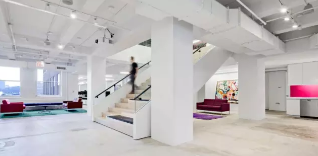 辦公空間大面積采用混凝土材料整體地坪,與現代風格的軟裝相互搭配,偶爾點綴期間的鮮活色彩,在整體純色空間形成對比,粗獷與精致相互交融,打造出全然開放通透、時尚簡約的空間環(huán)境。